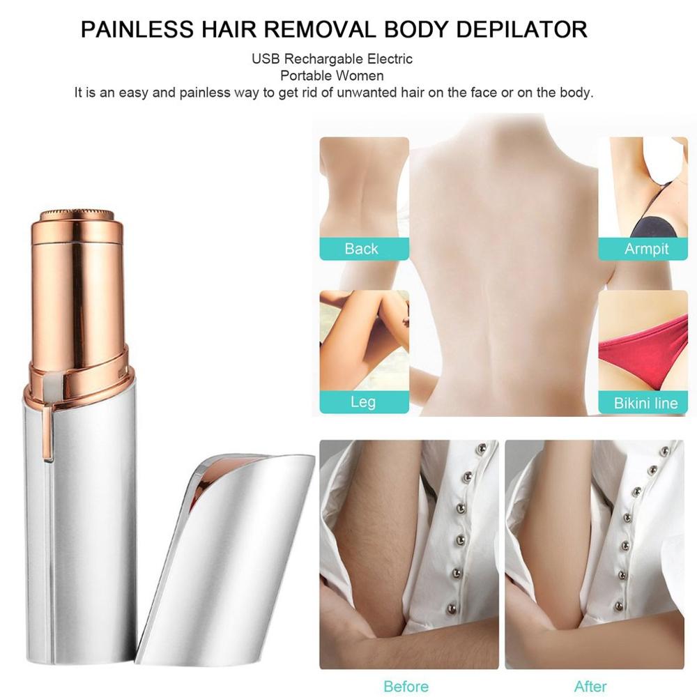 Features: Removes facial hair instantly and painlessly from lip, chin, cheeks. Built in light: you can use the light to see all of the hairs on your skin surface so that you can remove it and achieve the results that you are aiming for. The light works at the press of a button and it is bright enough to illuminate your surface well. Made from qualified material ensure long-lasting use. Designed to remove unwanted facial and body hair. It is an easy and painless way to get rid of unwanted hair on the face or on the body. Gentle enough to use every day, gives you superior performance in epilation Descriptions: Its design ensures convenient handling. It is hypoallergenic, suitable for all women. Mini design is very portable to take it with you. Specifications: Material: ABS Battery: built-in charging battery Size: 106*23.2mm Color: white, red, pink, black Package included: 1 x Body Facial Hair Remover 1 x Brush 1 x USB Cable 1 x Manual